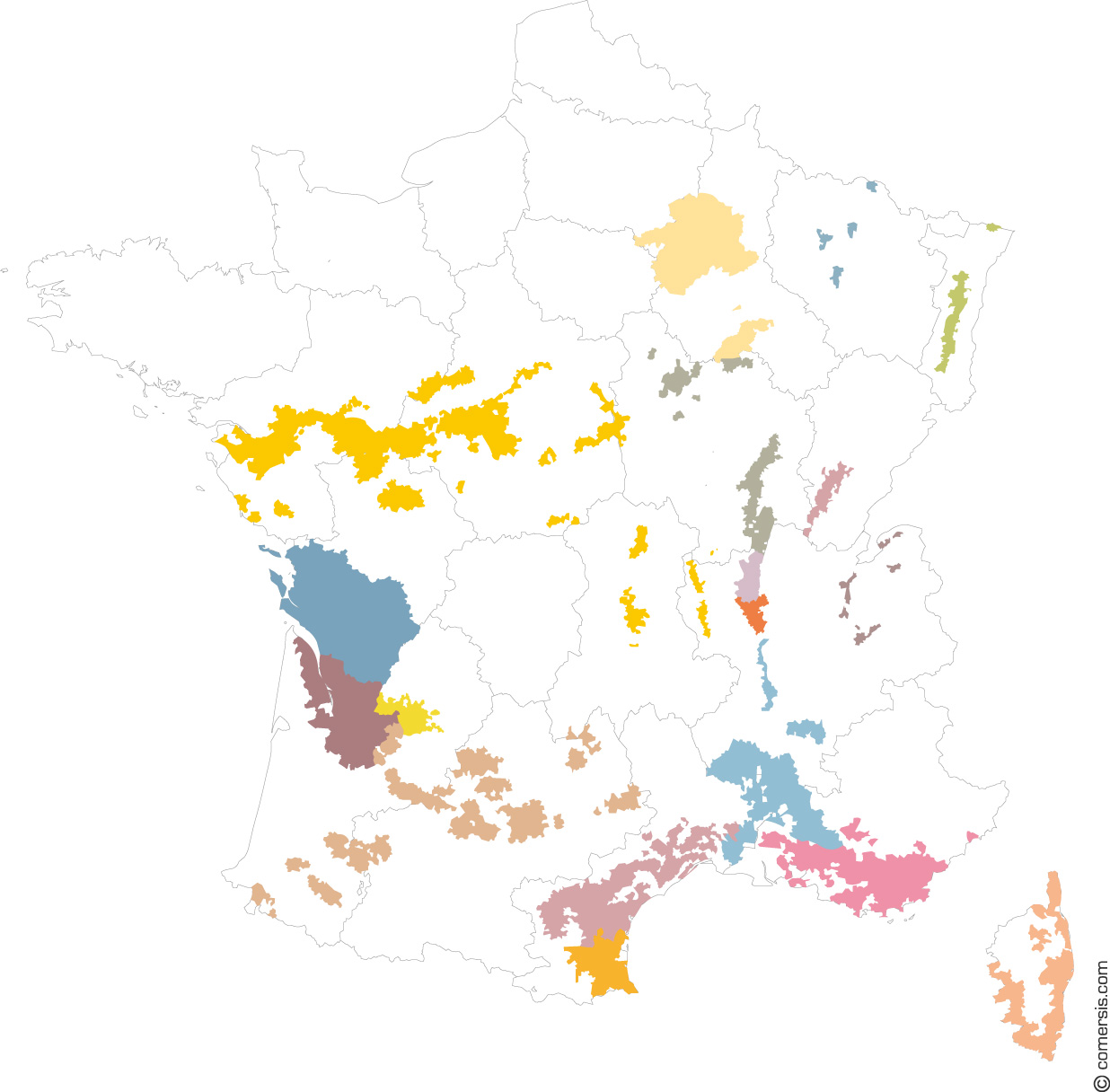 Free map of the vineyards of France.