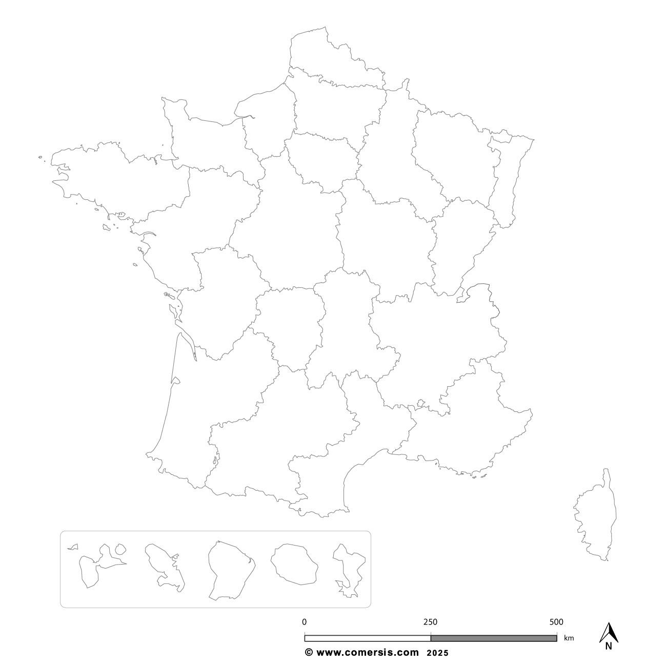 Free map of the former regions of metropolitan France to personalize according to your needs.