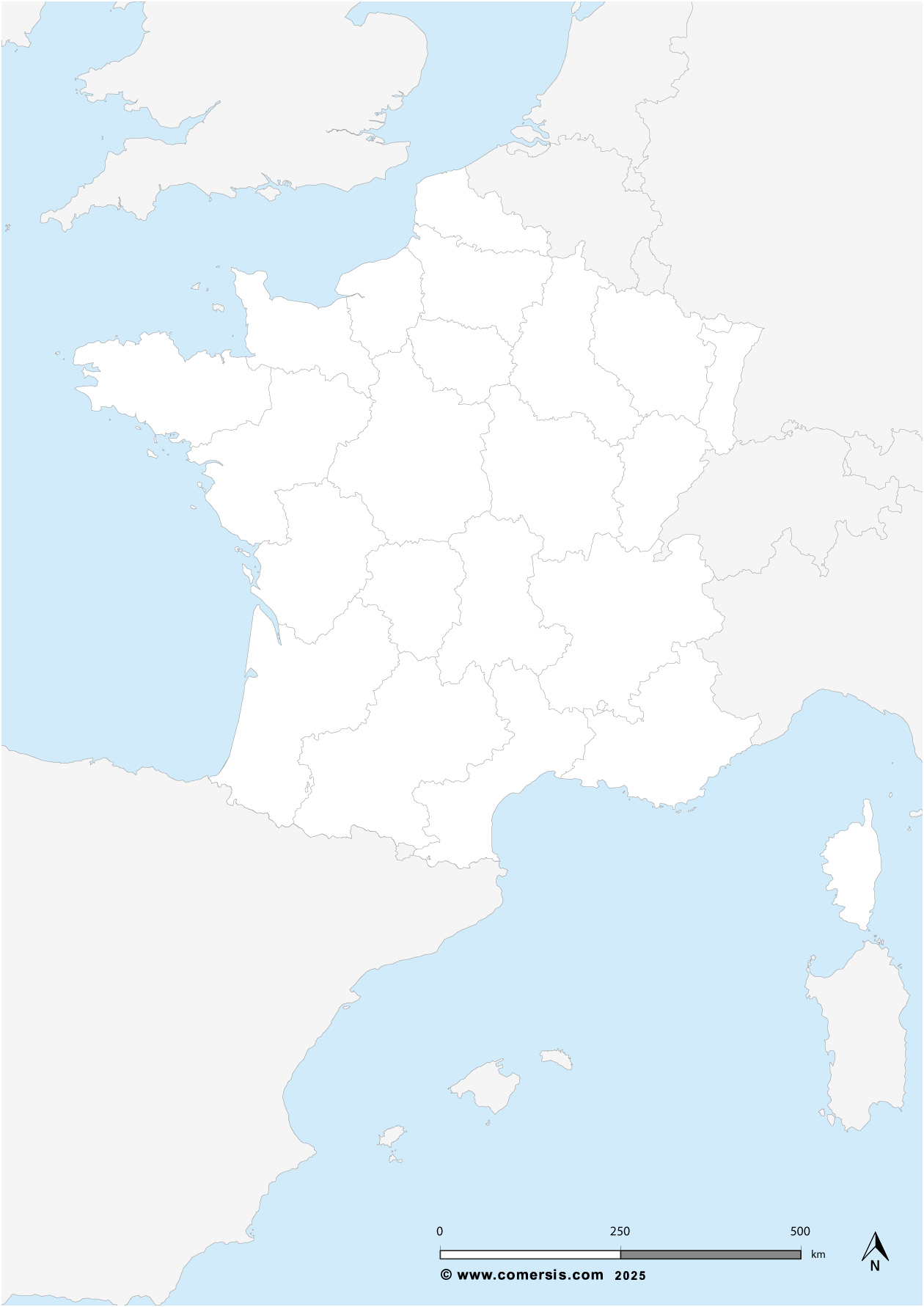Free map of the former regions of metropolitan France to personalize according to your needs.